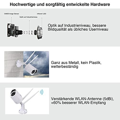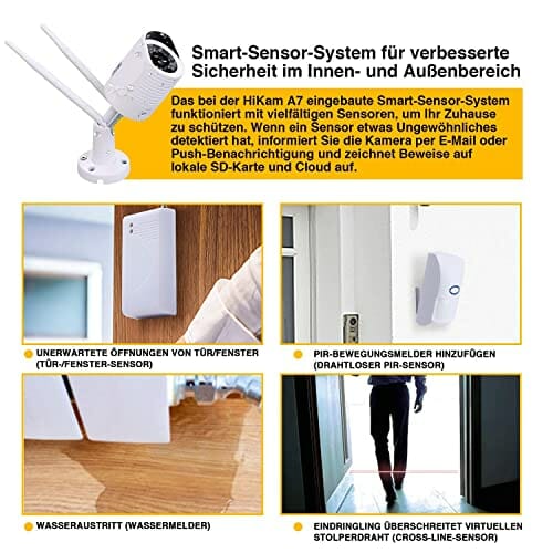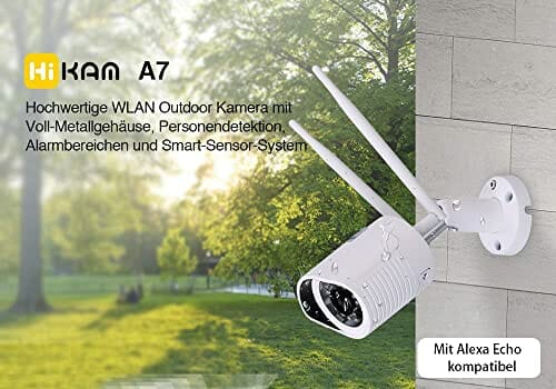 • ✅ Kamera monitorująca na zewnątrz: kamera monitorująca HiKam A7 jest odporna na warunki atmosferyczne (IP66) i dlatego nadaje się doskonale jako kamera bezpieczeństwa i system alarmowy do użytku na zewnątrz.