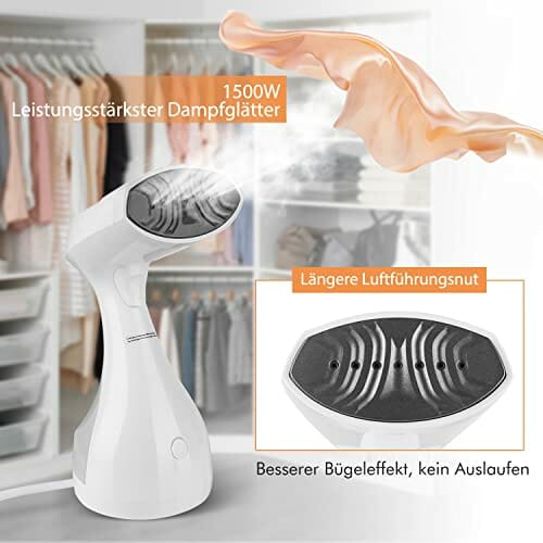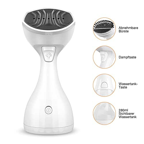 HOMEASY Prasownica parowa 1500 W, szczotka parowa 280 ml, żelazko parowe do ubrań, szybkie nagrzewanie w czasie podróży i w domu, kolor biały