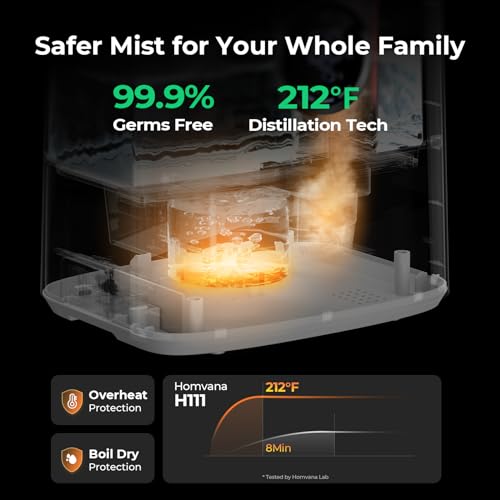 Homvana Nawilżacz powietrza do sypialni 65 l (65 h Running)