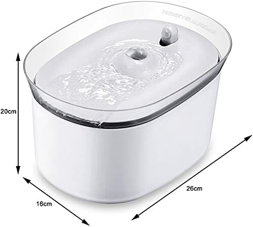 • Ochrona środowiska, energooszczędność, bezpieczeństwo i zdrowie: ta fontanna dla zwierząt została zaprojektowana przy bardzo niskim zużyciu energii, maksymalnie 2,6 kWh miesięcznie; Wykonane z materiałów spożywczych, bez BPA.