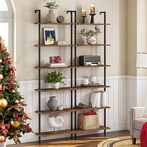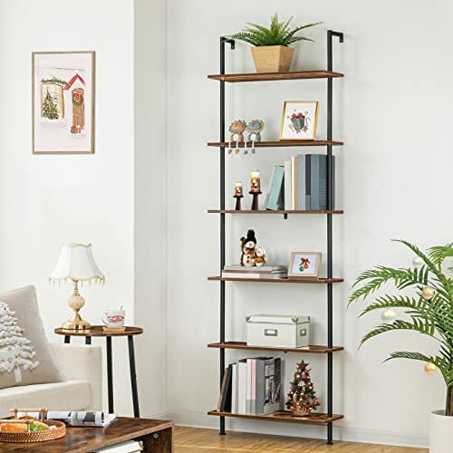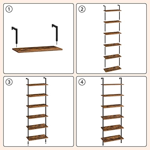 [HOOBRO 6 Tier DIY Bookcase Industrial Ladder Shelf Chipboard]