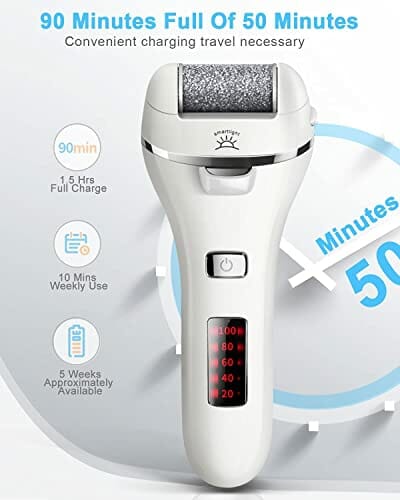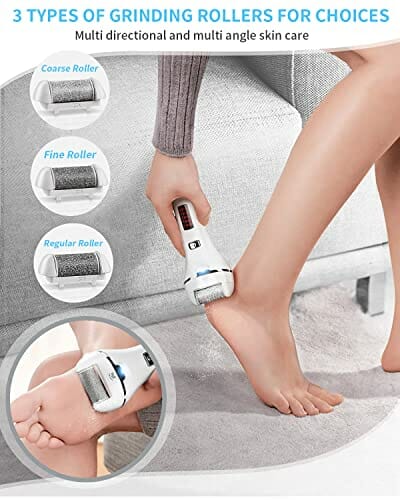 Elektryczne urządzenie do usuwania zrogowaciałego naskórka, możliwość ponownego ładowania, 3 zapasowe wałki i 2 prędkości, wskaźnik baterii, profesjonalne urządzenie do pielęgnacji stóp z
