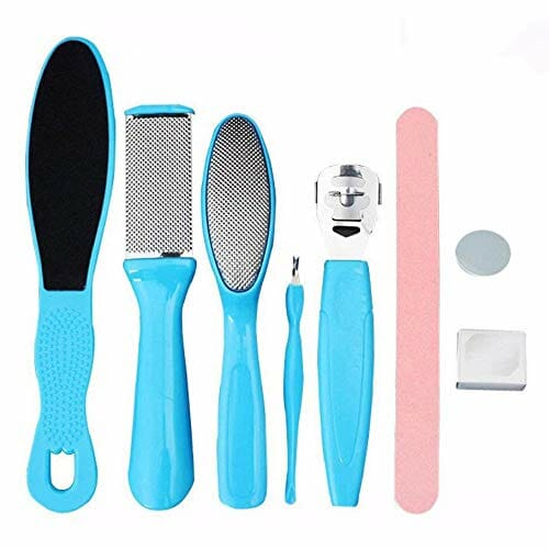 LHKJ 8 w 1 profesjonalny zestaw do pielęgnacji stóp, ze stali nierdzewnej, pilnik do usuwania zrogowaciałego naskórka, pilnik do stóp, pilnik do pielęgnacji stóp, kolor niebieski