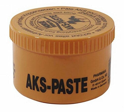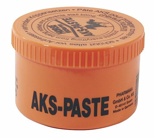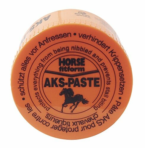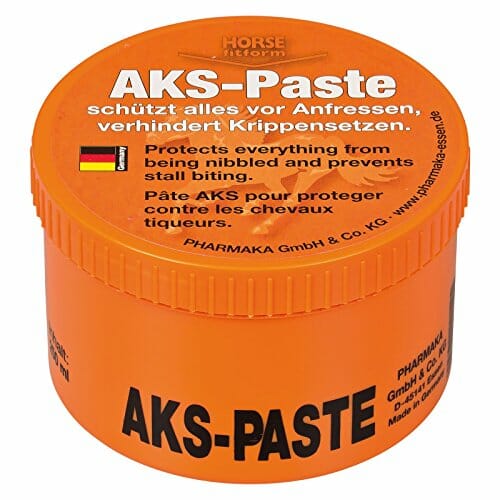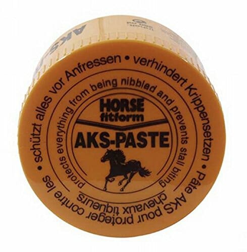 • Pasta AKS chroni konia przed wchłanianiem ciał obcych, takich jak wióry, włókna lub inne ciała obce poprzez połknięcie lub gryzienie, zapobiegając poważnym obrażeniom lub chorobom (np. kolka itd.). Przeciwko gąsienicom należy stosować pastę AKS.