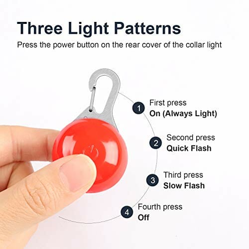 • 6 kolorów + 6 dodatkowych baterii: lampa dla psów jest dostępna w sześciu kolorach – czerwony, pomarańczowy, żółty, biały, zielony, niebieski z 6 dodatkowymi bateriami. Rozmiar to prawdopodobnie 30 x 20 mm (średnica i grubość) i waga 18 g.