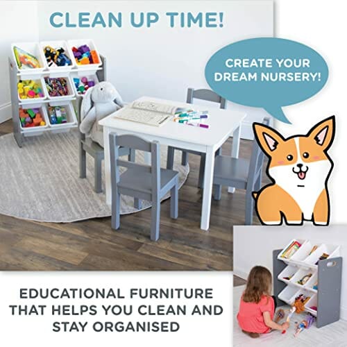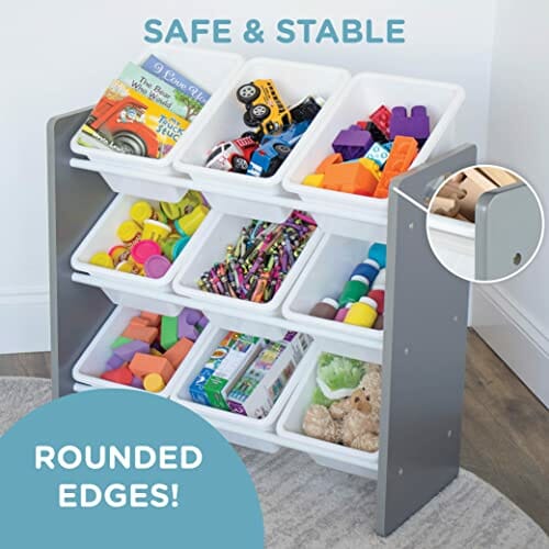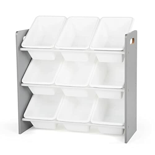 Humble Crew Półka dla dzieci, półka-organizer zabawek z 9 pojemnikami do przechowywania, szara/biała