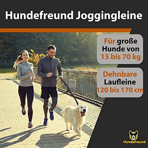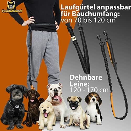 Hundefreund Smycz do biegania dla dużych psów od 15 kg | elastyczna smycz z lekkim paskiem na brzuch | zdejmowana smycz dla psa z 2 miękkimi szlufkami | pomarańczowa smycz do biegania (120 cm, rozciągliwa do 170 cm)