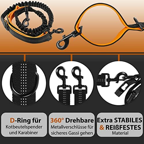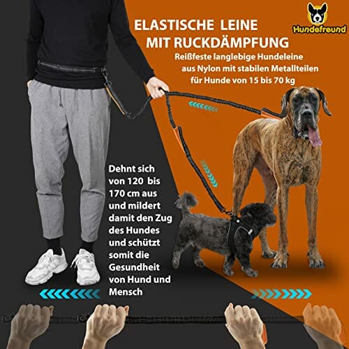 • Bezpieczny i zdrowy: jasno świecące elementy odblaskowe zapewniają bezpieczeństwo w ciemności, a amortyzacja w elastycznej smyczy sportowej zapobiega problemom zdrowotnym u psów i ludzi
