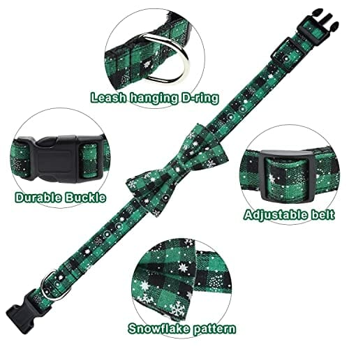 Obroża świąteczna dla kota i psa, JunD 2 szt. obroża dla psa z wymienną kokardą bożonarodzeniową, obroża treningowa dla psa, regulowana obroża dla psa z klamrą bezpieczeństwa (L)