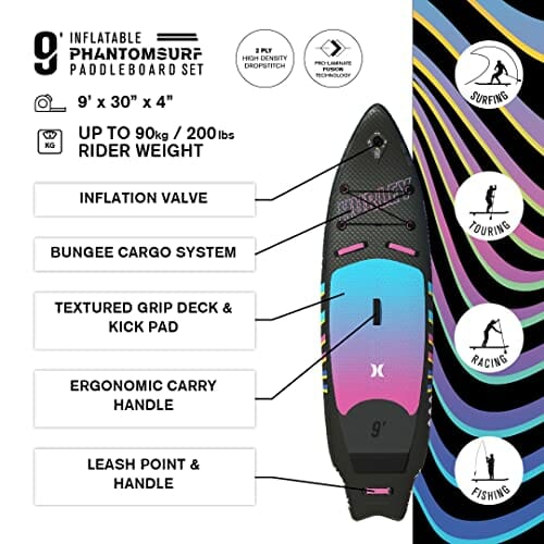 Hurley PhantomSurf deska do wiosłowania na stojąco z plecakiem do wędrówek, pompką powietrza, regulowane pływające wiosło, zwijana smycz, płetwa i zestaw naprawczy (Ombre)