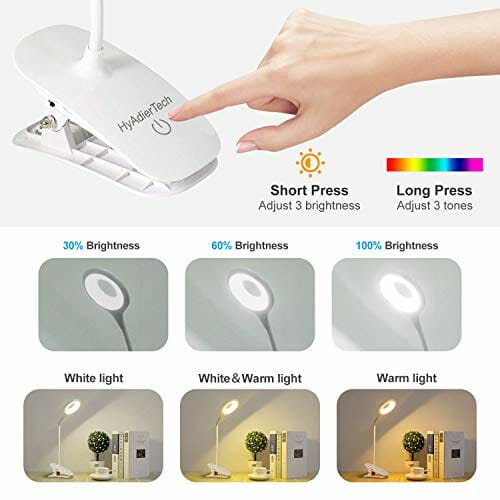 Lampka do czytania książek HyAdierTech to niezastąpiony towarzysz podczas wieczornego relaksu przy łóżku. Wyposażona w 40 diod LED, zapewnia doskonałe oświetlenie, które nie męczy oczu. Dzięki 3 trybom kolorów (biały, ciepły biały i żółty) oraz 9 poziomom jasności, możesz dostosować oświetlenie do swoich preferencji i potrzeb.