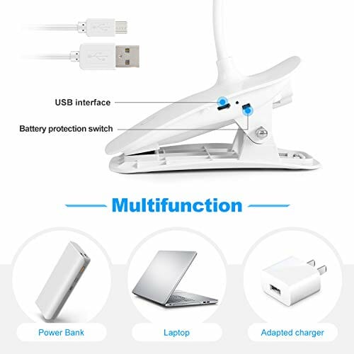 Ta lampka do czytania została zaprojektowana z myślą o Twoim komforcie. Jej klips umożliwia łatwe przymocowanie do książki, dzięki czemu możesz cieszyć się czytaniem bez konieczności trzymania lampki w ręku. Dodatkowo, lampka posiada funkcję ochrony oczu nocnej, która zmniejsza emisję niebieskiego światła, co pomaga w lepszym zasypianiu.