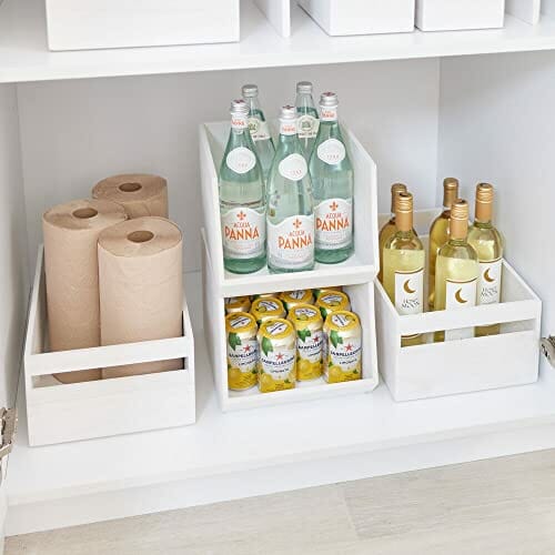 iDesign EcoWood pojemnik kuchenny z otwartym przodem, pojemnik kuchenny z ekologicznego drewna pawłownia, drewniane pudełko do kuchni, łazienki i innych, kolor biały, 25,4/29,21/20,96 cm