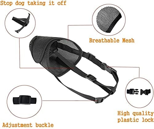 Kaganiec z nylonowej siatki z paskiem na głowę dla małych, średnich i dużych psów, zapobiegający gryzieniu, szczekaniu i żuciu(S, Czarny)