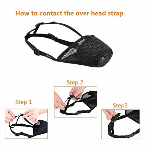• UWAGA: Przed użyciem zapoznaj się z opisem produktu, który podpowiada jak przyzwyczaić psa do kagańca, ponieważ na początku psy boją się nosić kaganiec: próbują go zdejmować lub przez niego gryźć.