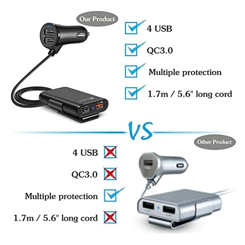 Stacja ładująca USB QC3.0 Cztery porty USB Ładowarka samochodowa do szybkiego ładowania Wiele urządzeń nadaje się do ładowarki do smartfonów do biura, szkoły i domu