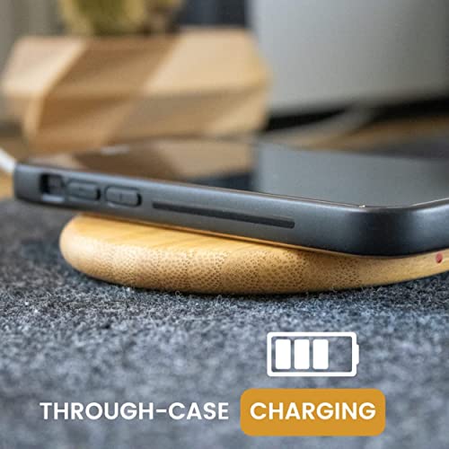 KIBODO – Drewniana ładowarka indukcyjna, 15 W kompatybilna z iPhone Samsung Huawei Xiaomi, bezprzewodowa stacja ładująca, ochrona Qi, złącze USB C, wskaźnik LED
