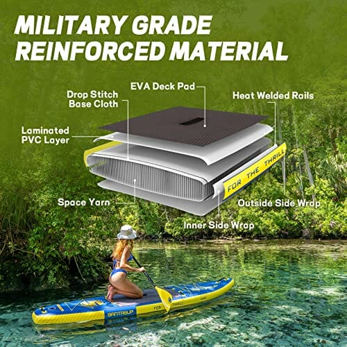 • √ 【STABILNA BODKA Z WIDŁOŚĆ】Deska SANTASUP ma 25 cm długości, 80 cm szerokości, 15 cm grubości i maksymalne obciążenie 145 kg. Wyjątkowo szeroka konstrukcja deski ISUP zapewnia ekstremalną stabilność, dzięki czemu początkujący mogą łatwo stać i równowagi. Nadmuchiwaną deskę można łatwo złożyć.