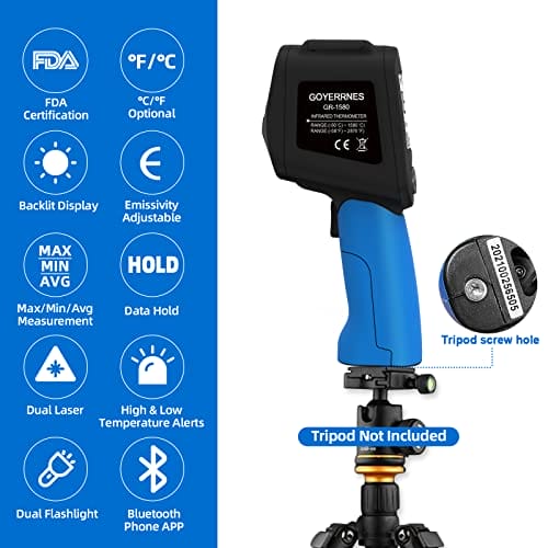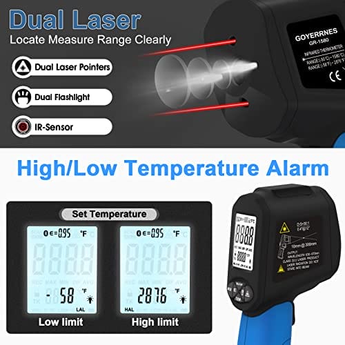 [title], GOYERRNES, Short Description: Termometr na podczerwień GR-1580 Bezdotykowy pirometr wysokotemperaturowy -58~2876℉(-50~1580℃ regulowana emisyjność współczynnik odległości:30:1 do pieca do topienia metali 【Nie dla ludzi】