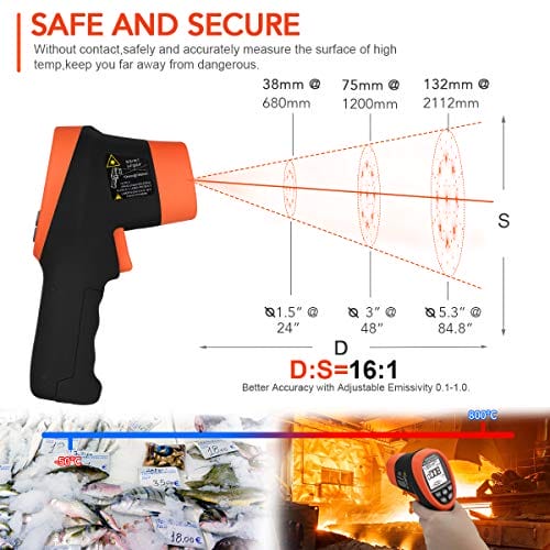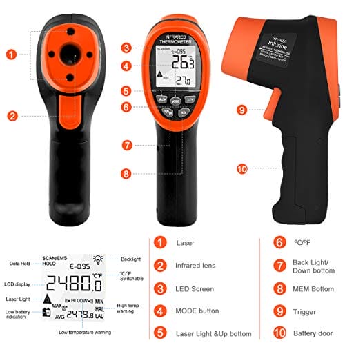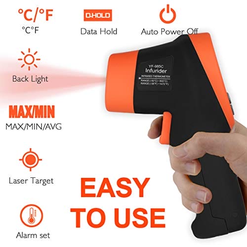 Cyfrowy termometr na podczerwień YF-985C Infurider – Precyzyjny termometr laserowy do pomiaru temperatury od -58℉ do 1472 ℉, z 16:1 laserowym wskaźnikiem celowania i alarmem wysokiej/niskiej temperatury