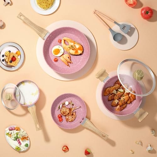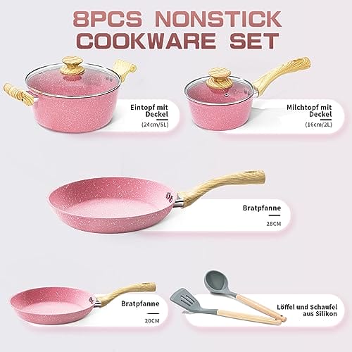 – Innerwell Różowy zestaw 8-częściowy zestaw patelni to zestaw składający się z ośmiu różnych patelni, które są niezbędne w każdej kuchni.