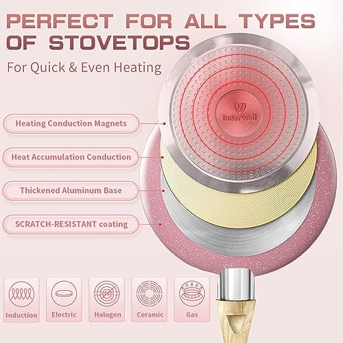 – Innerwell Różowy zestaw 8-częściowy zestaw patelni jest odpowiedni zarówno dla początkujących kucharzy, jak i dla doświadczonych profesjonalistów.