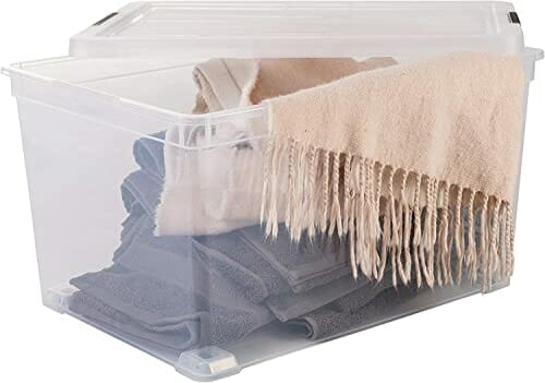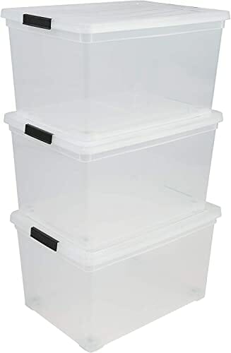 Iris Ohyama, Zestaw 3 sztuk, pudełko do przechowywania, 50 L, z zamknięciem zatrzaskowym, możliwość układania w stosy, sypialnia, garaż, strych – New Carry Stocker NCS-320 – Przezroczysty