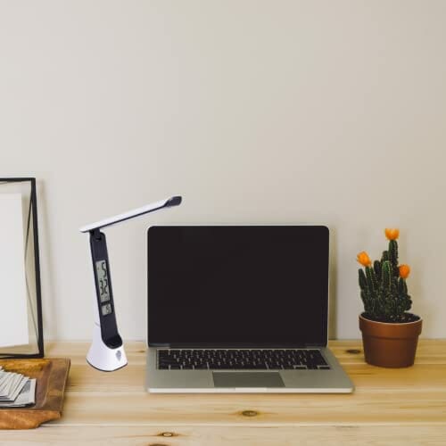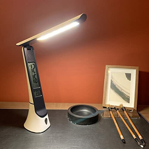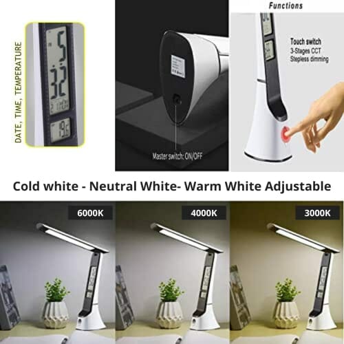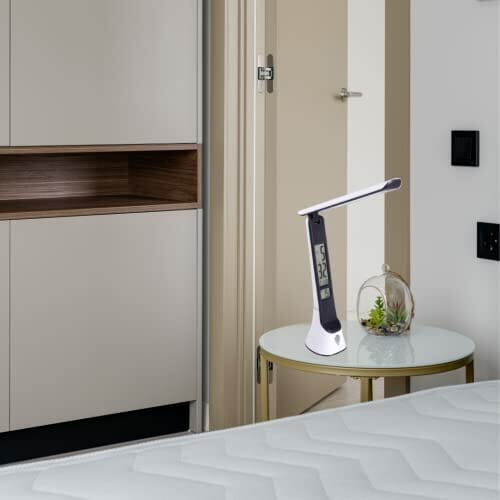 ✅ Lampa biurkowa i: Lampa biurkowa i stołowa LED, akumulator. Moc 5W, regulowana. 3000, 4000 i 6000 K. Zegar, budzik i temperatura. biały kolor