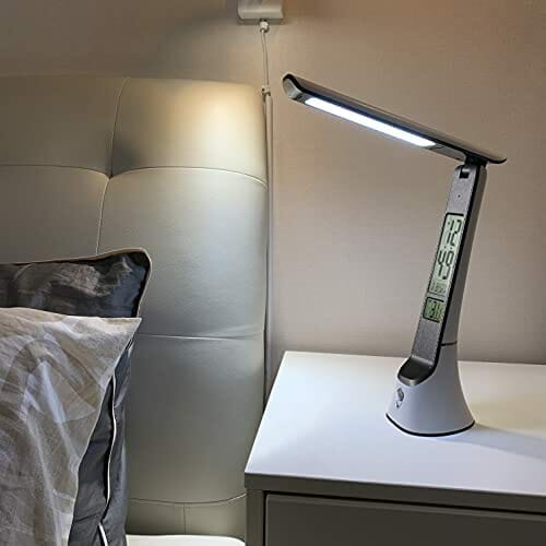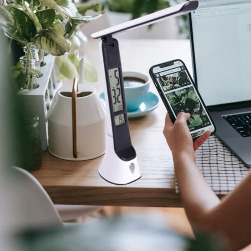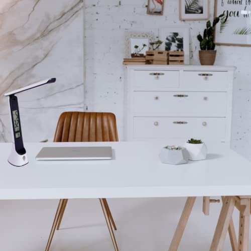 JANDEI – Lampa biurkowa LED z ładowaniem i baterią USB, 5W, 3 tony światła, ściemniana intensywność, alarm, kalendarz i zegar. Lampki nocne, dotykowe lampki do czytania Flexo.