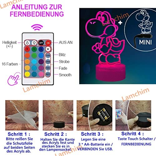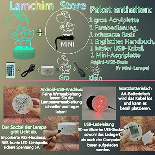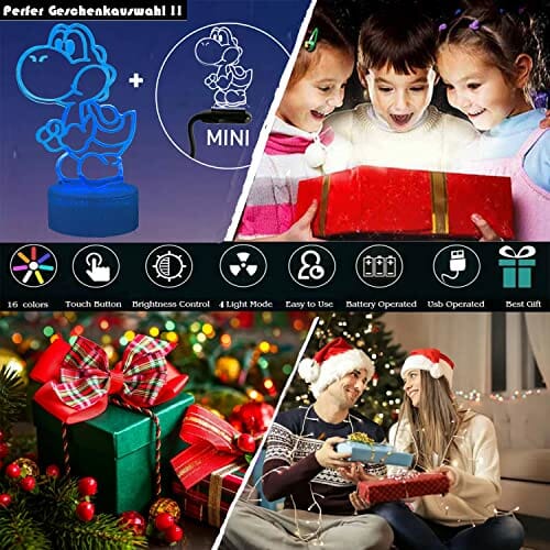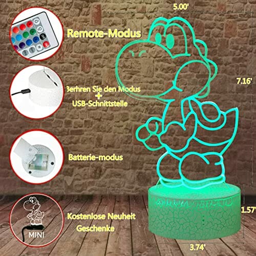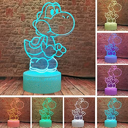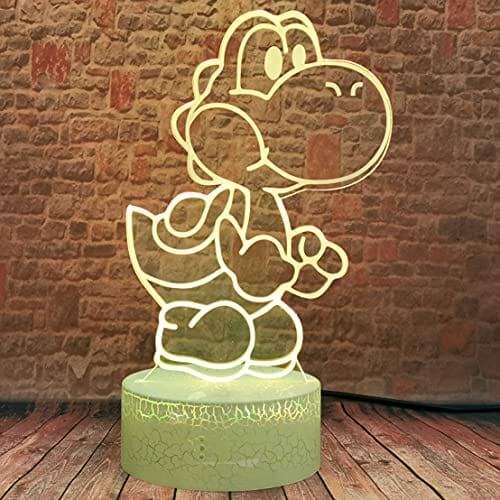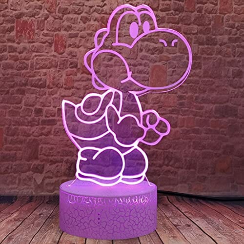 Gra z kreskówkami Yoshi figurka Super Mario Crack Base 16 zmieniających się kolorów, figurka 3D, kolorowa lampka nocna, stół do sypialni, dekoracja dla chłopców, nastolatków, małych syn, urodziny, Boże Narodzenie, prezent