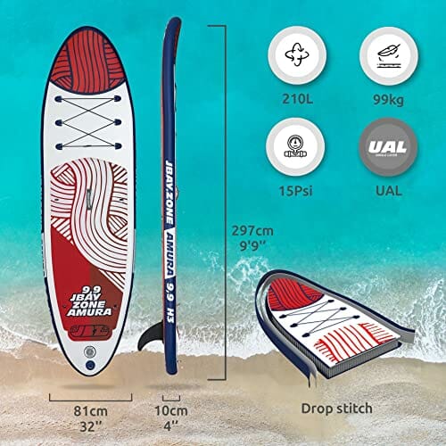 JBZ JBAY.ZONE AMURA H3, Płyta Stand Up Paddle SUP Nadmuchiwane Unisex Dorosły, Czerwony i Biały, 297x81x10 CM