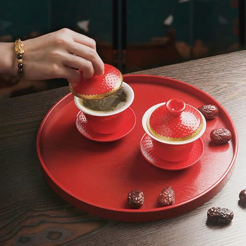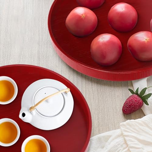 Taca do serwowania drewniana okrągła czerwona antypoślizgowa