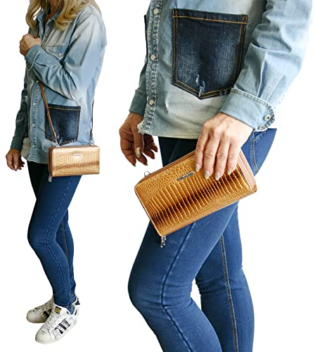 Jennifer Jones – prawdziwa skóra torebka z kieszenią na telefon komórkowy – 2 w 1 etui na telefon komórkowy i portfel z ochroną RFID