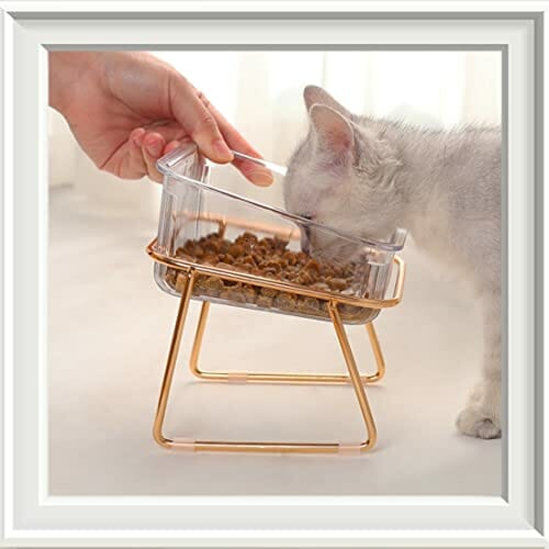jinminamz Miska na karmę dla zwierząt domowych, kotów, miski na karmę dla psów, pochyła misa, zdejmowana, antypoślizgowa miska na wodę, chroni kręgosłup zwierzęcia, miski dla kotów ze stojakiem