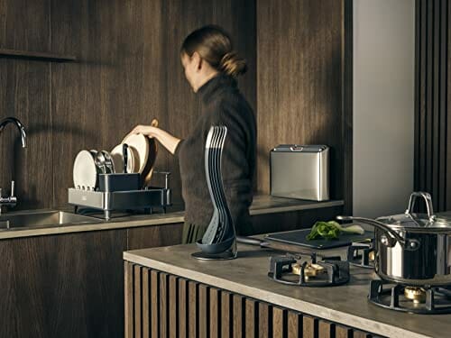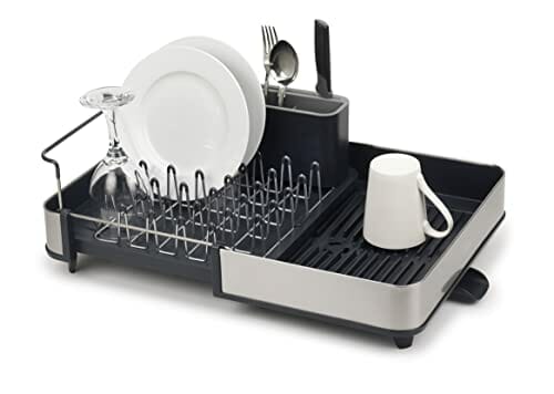 Joseph Joseph Extend Steel, Rozszerzalny Ociekacz na Naczynia ze Stali Nierdzewnej Wyjmowanym Pojemnikiem na Sztućce i Obrotowa Wylewka, Szary/Stalowy