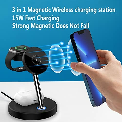 SCCVEE Magnetyczna bezprzewodowa stacja ładująca 3 w 1, szybka bezprzewodowa ładowarka, kompatybilna z iPhone 12/13/Pro/Max/Apple iWatch SE/7/6/5/4/3/2/AirPods 3/2/Pro, z adapterem QC3.0 18 W.