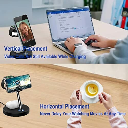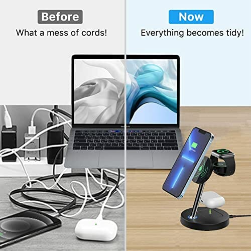 • ✅ 【Uwolnij się od bałaganu 】Ten bezprzewodowy stojak do ładowania został zaprojektowany specjalnie do bezprzewodowego ładowania iPhone/Apple/AirPods /iWatch Kabel może ładować cały stojak bez dodatkowych ładowarek i kabli, co zmniejsza bałagan i sprawia, że biurko jest czyste i uporządkowane.