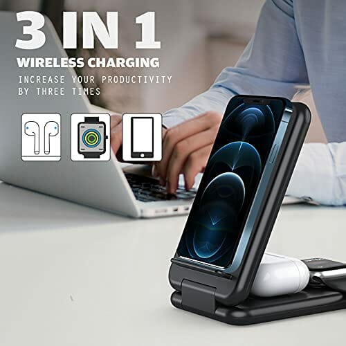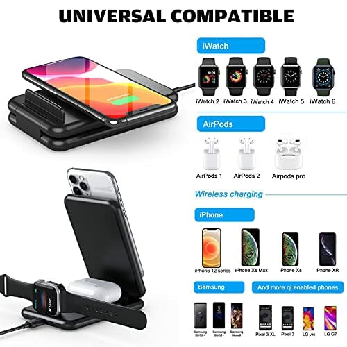 Bezprzewodowa ładowarka 3 w 1, bezprzewodowa ładowarka, indukcyjna stacja ładująca, kompatybilna z iWatch/AirPods Pro 2/iPhone 13/12/11/Pro/Max/XR/XS/XS Max/X/8/8 Plus i smartfonami QI