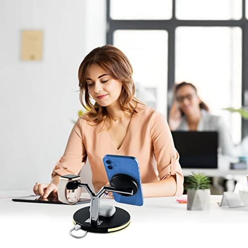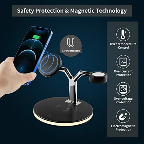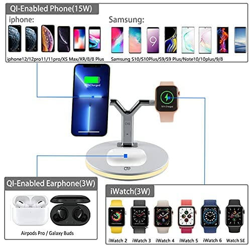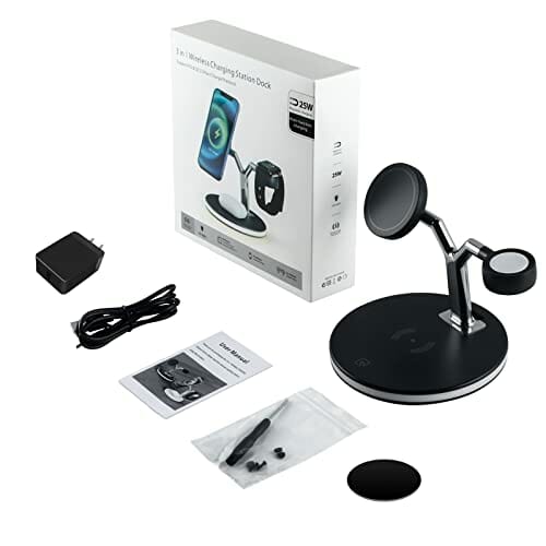 Elec Space Magnetyczna bezprzewodowa stacja ładująca 3 w 1, kompatybilna z Apple iPhone 13 12 11 Pro Max/XS/XR/X/8, iWatch SE/6/5/4/3/2, indukcyjna stacja ładująca, obsługa każdego telefonu komórkowego QI