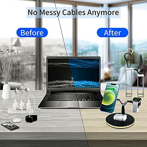 • 【Inteligentny wskaźnik ładowania】 Ta bezprzewodowa stacja ładująca została zaprojektowana specjalnie z pierścieniowym oświetleniem, które może być włączane lub wyłączane ręcznie i może być używana jako lampka nocna. Wskazówka: Po podłączeniu zasilania należy poczekać, aż wskaźnik zacznie migać przez trzy sekundy i przytrzymać niebieskie światło. Następnie możesz włączyć swoje urządzenie i rozpocząć ładowanie