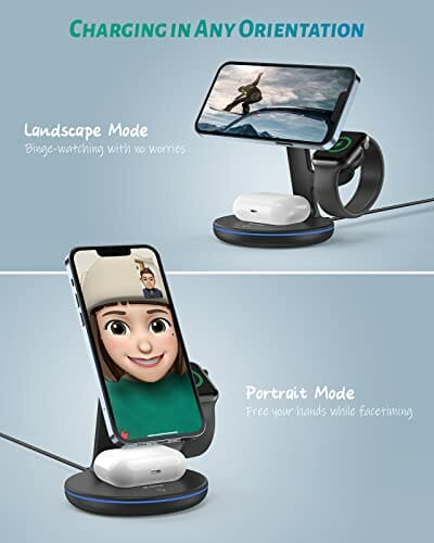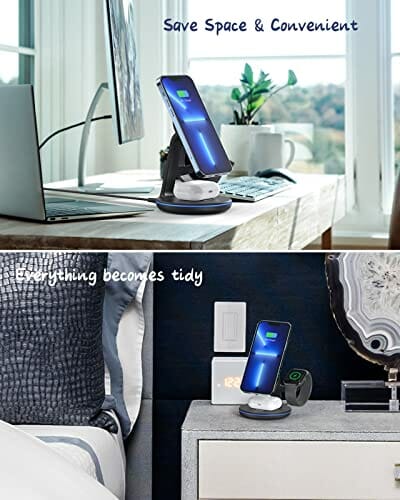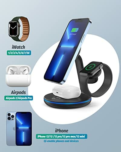 • ✨ Bezprzewodowa ładowarka 3 w 1: w kształcie drzewa bezprzewodowa ładowarka z trzema punktami ładowania. Można ładować równocześnie kompatybilny z iPhone, iWatch i AirPods. Kompatybilny z iPhone 13/13 Mini/13Pro/13Pro max/12/12 Mini/12 Pro/12 Pro Max、iWatch SE/6/5/4/3/2/1、AirPods 2/Pro.