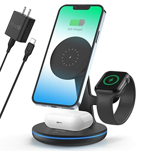 Bezprzewodowa ładowarka, 2022, nowa stacja ładująca, 3 w 1, bezprzewodowa ładowarka, stojak, z adapterem QC 3.0, kompatybilna z telefonem serii 13/12 i up、iWatch Series 1-6/SE, AirPods 2/Pro