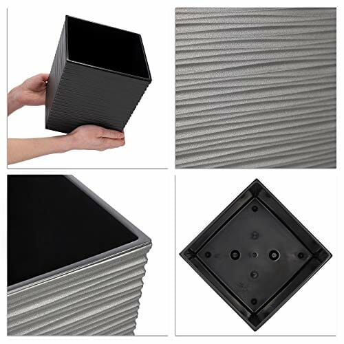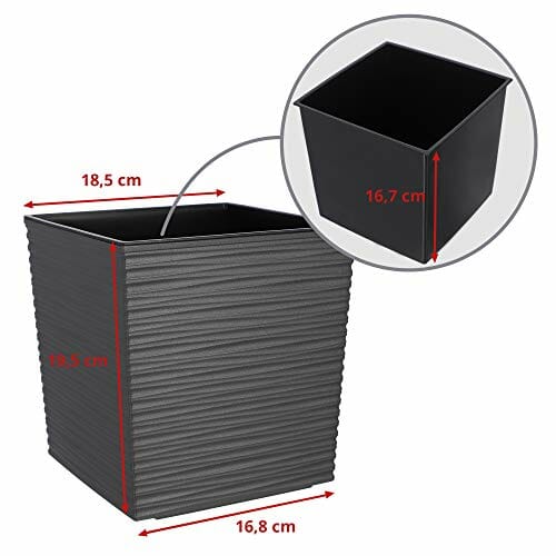 KADAX Doniczka z tworzywa sztucznego, odporna na warunki atmosferyczne, doniczka ogrodowa na balkon, taras, do wnętrz, lekka doniczka z wkładką, doniczka na rośliny, doniczka na kwiaty (wysokość: 19 cm, grafitowa)
