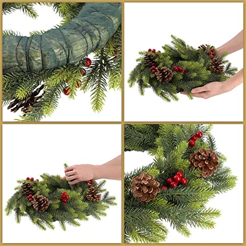 • 4 rozmiary do wyboru – sztuczny wieniec bożonarodzeniowy jest dostępny w czterech modelach. Wszystkie wieńce jodłowe są intensywnie zielone, a dwie z nich mają dodatkowe dekoracje: szyszki jodłowe i jagody jesionu. Różnią się one wytrzymałością gałęzi.