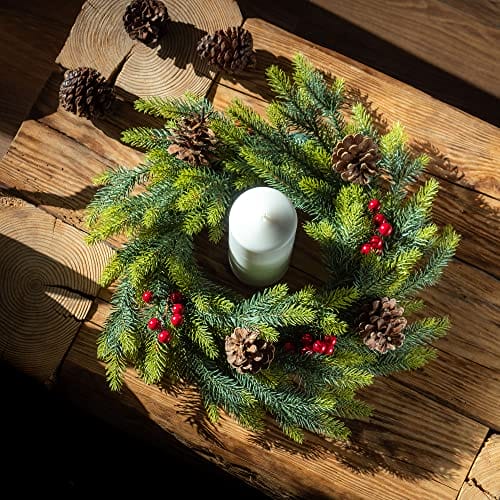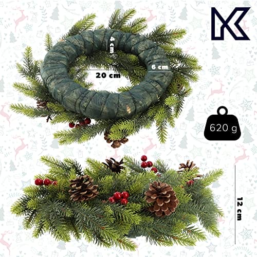 Kadax Wieniec bożonarodzeniowy z tworzywa sztucznego PE, korona bożonarodzeniowa na drzwi, wieniec adwentowy, sztuczna jodła, wieniec na stół, dekoracja stołu (model Eva z dekoracją 45 cm)