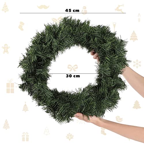 ✅ Praktyczny – wieniec: Praktyczny – wieniec bożonarodzeniowy ma średnicę 45 cm. Ten rozmiar jest bardzo praktyczny do dekoracji drzwi, okien lub stołów. Będzie ozdobą każdego pomieszczenia.