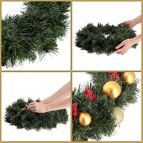 ✅ Wytrzymały – wieniec: Wytrzymały – wieniec bożonarodzeniowy został wykonany z wysokiej jakości tworzywa sztucznego PCW, co przyczynia się do jego pięknego wyglądu i wysokiej jakości. Będzie Ci towarzyszyć przez wiele lat jako dekoracja wewnątrz lub na zewnątrz.