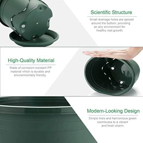 KAHEIGN Plastikowe doniczki na rośliny, 19 cm, pogrubiona, kontrola korzeni, sadzonka, dekoracyjny pojemnik na rośliny ogrodowe z podstawką, do użytku wewnątrz i na zewnątrz, bonsai (zielone)