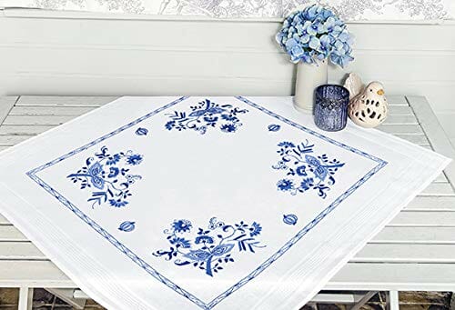 Napisz pierwszą opinię o „Zestaw do haftowania KWIATY PRZED W NIEBIESKIM – obrus 80×80 cm, ścieg napinany, ścieg płaski, 100% bawełna”