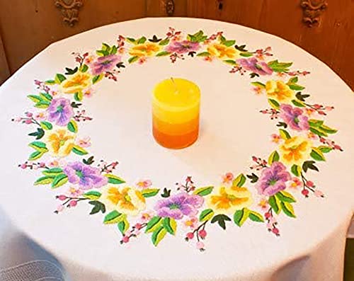 Zestaw do haftowania kwiaty — czarodziejski obrus 80 x 80 cm, ścieg naprężający, ścieg płaski, bawełna, szablon – kompletny zestaw do haftowania